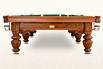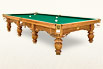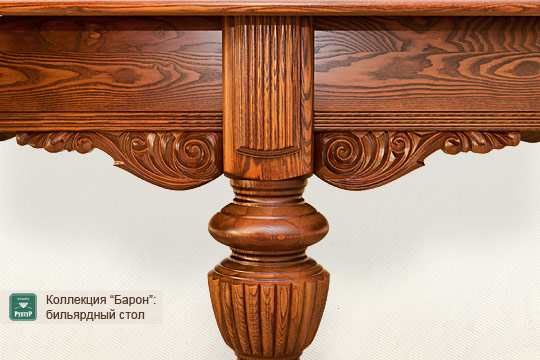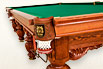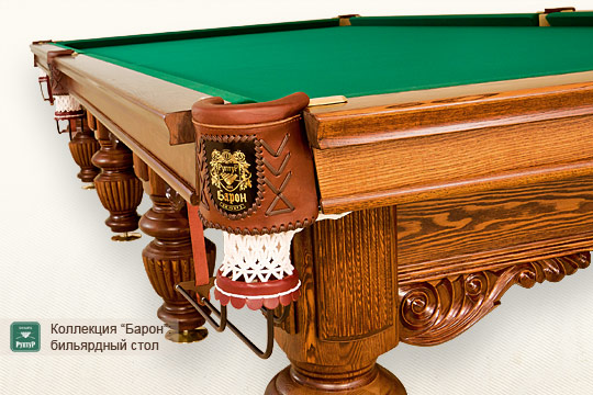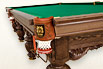 A bulky billiard table with fancy legs and carved side board pads. It is recommended for furnishing a suburban house billiard room or a VIP hall of a Billiard Club. It has all the parameters a sporting billiard table should have.