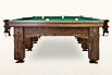 A country-style billiard table. Its simple shapes combines with wide forged plates decorating the table’s side boards provide an ideal match for a picturesque interior of a suburban house.