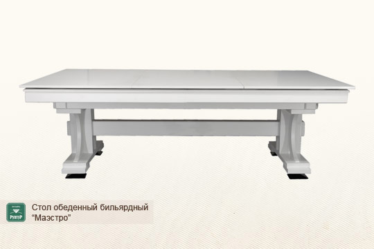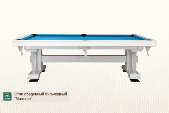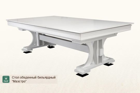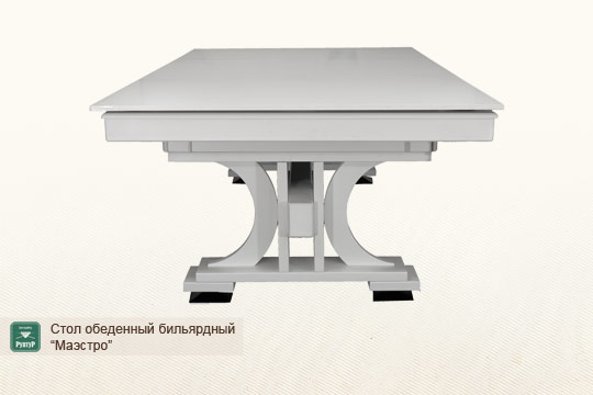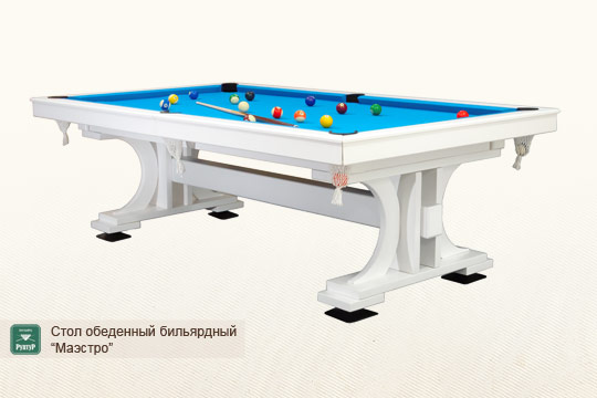 «Маэстро» не просто подарит возможность проводить время за любимой игрой в бильярд у вас дома. Он также избавит вас от необходимости занимать под ваше увлечение отдельную комнату, как это происходит с обычным бильярдом. Стол «Маэстро» может легко и непринужденно использоваться как обеденный в гостиной или письменный в рабочем кабинете.