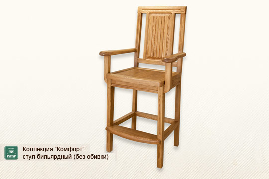 A billiard chair will provide a comfortable seating for the players. It is much higher than usual chairs so that the player can see well the billiard table ball positions, while her or his feet can be comfortably rested against a special support.