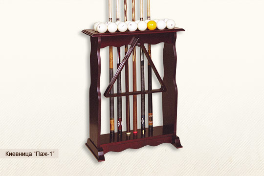 The cue rack is designed to hold six billiard cues. Its upper part may serve for a comfortable storage of the billiard balls. The cues are positioned bolt upright to preserve their linearity, while the lower cue rack part has a special hanger to hold the triangle.